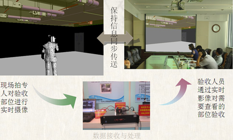 (5)遠程視頻驗收系統。現場派專人對驗收部位進行實施攝像,保持信息同步傳送,驗收人員通過適時影像對需要查看的部位驗收。