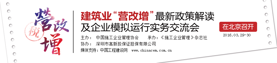 【本網(wǎng)訊】 2016年3月29-30日,由中國(guó)施工企業(yè)管理協(xié)會(huì)主辦、《施工企業(yè)管理》雜志社承辦的“建筑業(yè)‘營(yíng)改增’最新政策解讀及企業(yè)模擬運(yùn)行實(shí)務(wù)交流會(huì)”在北京召開。來自財(cái)政部財(cái)科所的稅收政策專家、行業(yè)“營(yíng)改增”咨詢專家深入解讀最新政策、講解應(yīng)對(duì)策略,做過模擬運(yùn)行的案例企業(yè)分享實(shí)務(wù)操作和經(jīng)驗(yàn)體會(huì)。中國(guó)施工企業(yè)管理協(xié)會(huì)副會(huì)長(zhǎng)李清旭出席會(huì)議,《施工企業(yè)管理》雜志社副社長(zhǎng)劉海、副主編龔煒主持會(huì)議,來自全國(guó)170多家施工企業(yè)的650余名代表參加了會(huì)議。