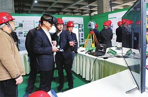 日前,重慶江北區建筑施工文明生產標準化現場觀摩會在觀音橋太陽谷建筑施工現場舉行,主辦單位展示了VR安全體驗館、BIM放線機器人、建筑工地現場門禁系統等各種高科技的“智慧工地”設備,令人眼界大開,贊嘆不已。圖為工人們通過VR安全體驗設備體驗塔吊升降臺由高空向下掉落的驚險場景,以此增強安全意識。