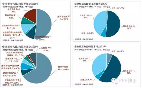 在企業性質占比方面,回報率排名在前20%的項目有48個,參與的企業共70個,其中國有企業較多,共有36個,占51%,國有上市企業有1個,剩下的35個為國有非上市企業;參與項目的民營企業共有34個,占比為49%,民營上市企業有5個,民營非上市企業有29個。回報率排在最后20%的企業中,國有企業有53個,比民營企業多了17 個,其中非上市的企業較上市企業占比多,國有非上市企業47個,占比53%,民營非上市企業31個,占比為35%。