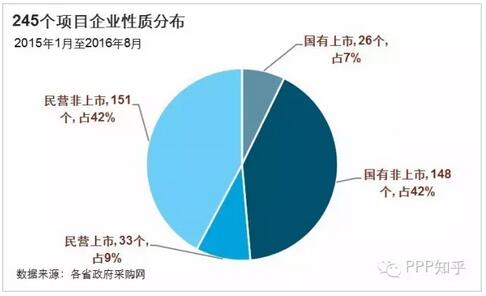 將聯合體內的所有企業拆開后,245個項目的中標人一共包含358個企業,其中民營企業的個數較國有企業的個數稍多,共有184個,占比為51%,國有企業共有174個,占比為49%,非上市企業在民營企業和國有企業中都占大多數,比例均為42%。