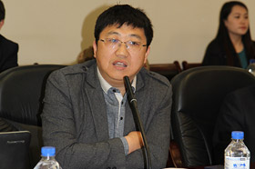 雜志社副總編肖華文介紹調研組成員 中鐵建工安全總監高建彬主持會議