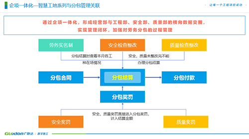企項一體化對分包管理最大的價值是,能夠將勞務分包實現管理閉環,加強對勞務分包的過程管理。傳統的發包管理方式下,安全部、質量部、工程部存在工作交圈問題,經營人員在辦分包結算時并不清楚勞務隊對質量、安全問題的整改情況,對安全和質量的罰款如果沒有及時送到經營人員手里,那么該分包罰款就沒有實質性的扣掉。