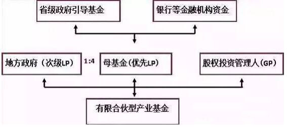 該模式下,由中央部委牽頭或省級政府層面出資成立引導基金,再以此吸引金融機構資金,合作成立產業基金母基金。各地申報的項目,經過金融機構審核后,由地方財政做劣后級,母基金做優先級,杠桿比例大多為1:4。地方政府做劣后,承擔主要風險,項目需要通過省政府審核。