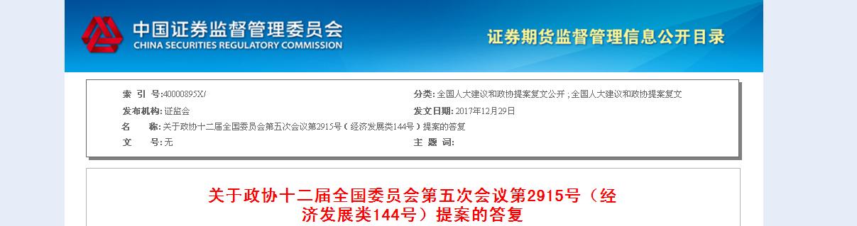 證監會網站近日發布關于政協十二屆全國委員會第五次會議第2915號(經濟發展類144號)提案(《關于建立PPP退出機制的提案》)的答復,答復原文如下: