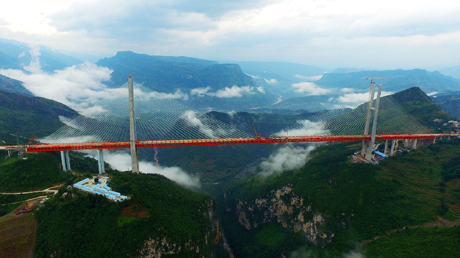9月10日,垂直高度565米,相當(dāng)于200層樓高的世界第一高橋畢都高速北盤江大橋正式合龍。該橋由中交集團(tuán)所屬公規(guī)院設(shè)計,二航局承建。