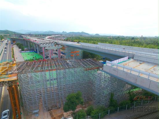興延高速上跨京包鐵路立交橋施工長度311米,橋梁分幅設(shè)橋,單幅橋?qū)?7.5米,兩幅橋凈距0.5米,全寬35.5米,單幅轉(zhuǎn)體梁重為2690噸,是北京鐵路局管轄范圍內(nèi)第一架鋼箱梁T構(gòu)轉(zhuǎn)體,也是北京地區(qū)跨越線間距最大的轉(zhuǎn)體橋。