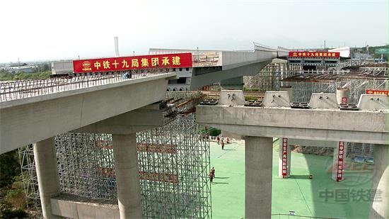為減少橋梁施工對既有鐵路的干擾,保證鐵路運(yùn)行安全平穩(wěn),該橋采用雙幅同轉(zhuǎn)施工法施工,建設(shè)者采取“先建后轉(zhuǎn)”工藝,先沿著鐵路平行方向建設(shè)橋體,再將建好的橋體按順時(shí)針方向轉(zhuǎn)動(dòng)74.5度,轉(zhuǎn)體至設(shè)計(jì)位置。經(jīng)過多次論證,鋼箱梁便于安裝,對鐵路運(yùn)行影響小。