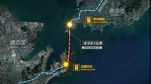 青島地鐵1號線規劃線路全長59.97公里,跨海隧道全長8.1公里,其中過海段長約3.49公里。海域段設置兩條主隧道,雙線中間無服務隧道,兩條隧道相距150米以上,高距相差不會超過10米, 海底部分最深處達到88米,其中水深就有40多米,隧道拱頂距離海底為33至39米 。按計劃,地鐵1號線工程施工期約為33個月,工程預計投資14億元。全線共設地下車站40座,車輛段2座、停車場1座,控制中心1座,主變電所1座。是連接西海岸城區、東岸城區和北岸城區的南北向快速軌道交通走廊,可與軌道線網中的11條線路進行換乘。