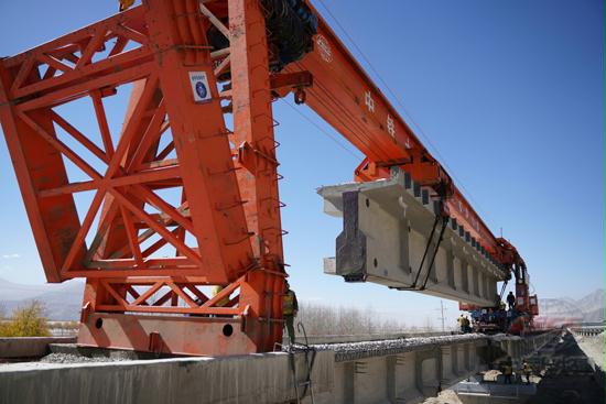 鋪架施工過程中,面對(duì)地質(zhì)條件復(fù)雜的雅魯藏布江風(fēng)沙沉積區(qū)域,三公司建設(shè)者克服了疏松的沙質(zhì)地和冬季強(qiáng)沙塵暴天氣,以及高原嚴(yán)寒、缺氧、溫差大等惡劣的自然環(huán)境,為拉林鐵路在后續(xù)河谷地帶鋪架作業(yè)積累了寶貴的經(jīng)驗(yàn)。