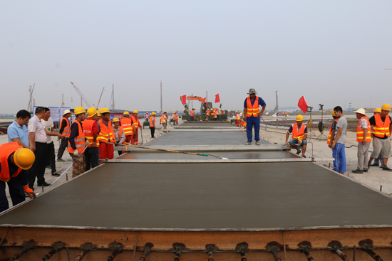 中鐵北京工程局承建標(biāo)段進(jìn)行道面澆筑施工