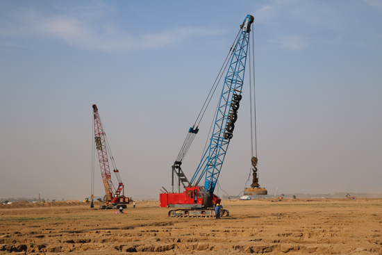 中鐵北京工程局承建標(biāo)段進(jìn)行地基強(qiáng)夯施工