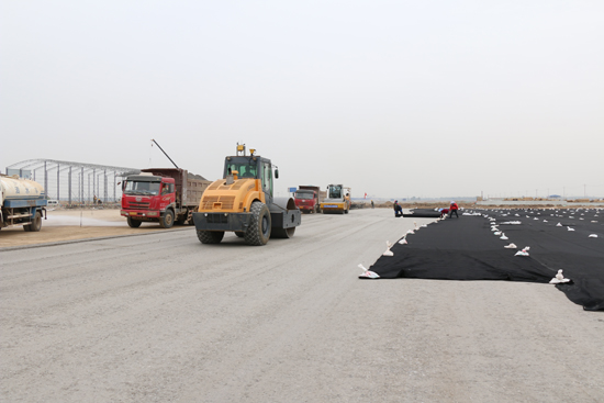 中鐵北京工程局集團(tuán)機(jī)場工程分公司承建的北京新機(jī)場場道工程八標(biāo)段(FXQ-CD-008標(biāo)段)位于機(jī)場中心區(qū),北面與本期航站樓相接,中間為預(yù)留S1衛(wèi)星廳,南端為遠(yuǎn)期規(guī)劃航站樓,標(biāo)段總面積為55.5萬平米,合同總造價(jià)為5.18億元。工程內(nèi)容:地基處理工程強(qiáng)夯23.5萬㎡,沖擊碾壓27.9萬㎡,振動(dòng)碾壓14.4萬㎡;土方填筑約98萬m³;新建一條815m×25.35m~29.75m(不等截面)的APM旅客及捷運(yùn)行李通道;工程同時(shí)包括滑行道、聯(lián)絡(luò)道、服務(wù)車道等工程,其中水泥混凝土道面面積27.4萬 ㎡,瀝青混凝土服務(wù)車道面積6.3萬㎡,道肩面積8.2萬㎡,土面區(qū)13.6萬㎡ ;排水溝總長約5.2km。合同工期為2014年12月30日至2019年6月30日。