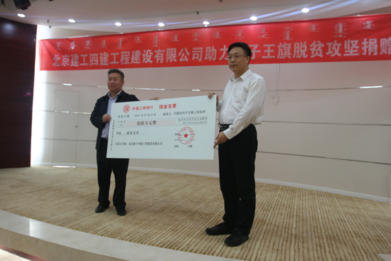 為深入落實中共中央國務院關于三年打贏脫貧攻堅戰的指導意見,根據北京市對口扶貧內蒙古自治區具體內容,北京建工四建公司勇于承擔國企社會責任,積極參加懷柔區對口扶貧四子王旗脫貧攻堅工作,2019年7月23日,赴內蒙古四子王旗向旗人民政府捐贈資金70萬元用于脫貧攻堅。北京市懷柔區住建委副主任王建國、發改委劉鵬以及公司黨委副書記、工會主席李長曉,自治區派駐四子王旗脫貧攻堅總隊隊長、旗委副書記王君,旗委常委、常務副旗長竇陶然等出席捐贈儀式。旗委常委、副旗長王之帆主持捐贈儀式。