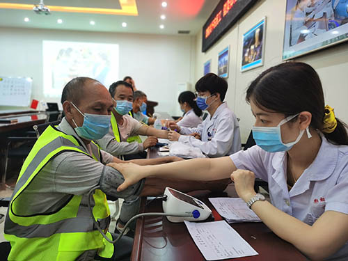 7月2日,中建二局三公司西安咸陽融創項目部為建筑工友進行了“免費健康體檢”活動,為100余名一線工友送去了“健康大禮包”。活動營造出了良好的安全氛圍,為堅決打贏疫情阻擊戰貢獻了新力量。