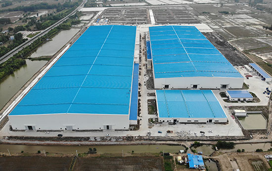 江蘇鑫慧風新能源項目,位于江蘇省鹽城市阜寧開發區,由鋼結構成型車間及附房、后處理車間及附房、原材料庫房三部分組成,總建筑面積為11萬平方米,于2019年11月開工建設。