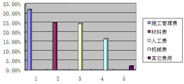 二是可以直觀地看出為降低總成本上升做出最大貢獻(xiàn)的將是施工管理費開支的減少,其次是材料費成本的降低,再次是人工費的降低,僅這三項就占工程總成本降低額的81.50%,它們的降低幅度基本上決定了總成本降低的幅度。