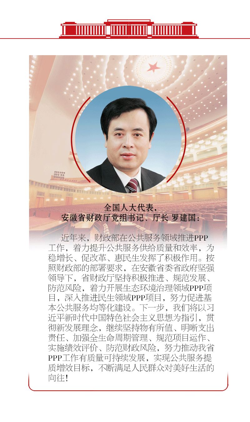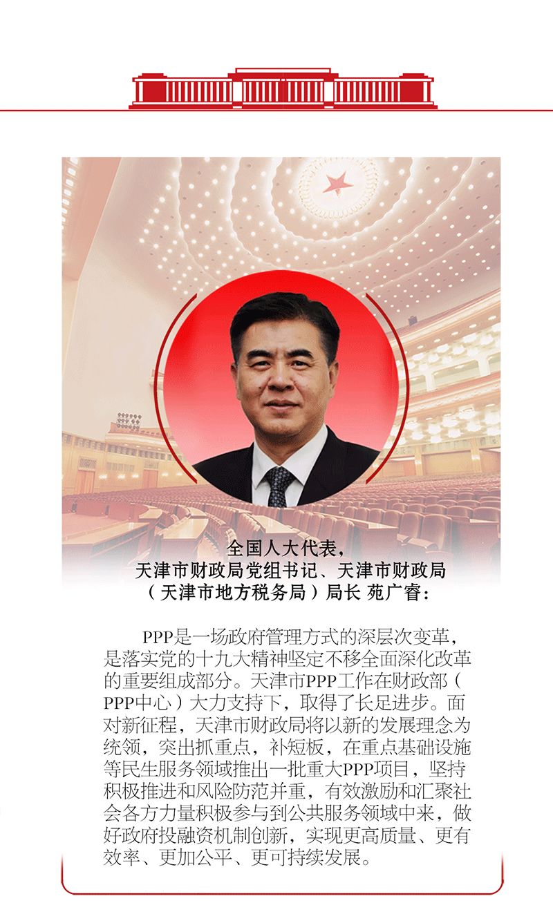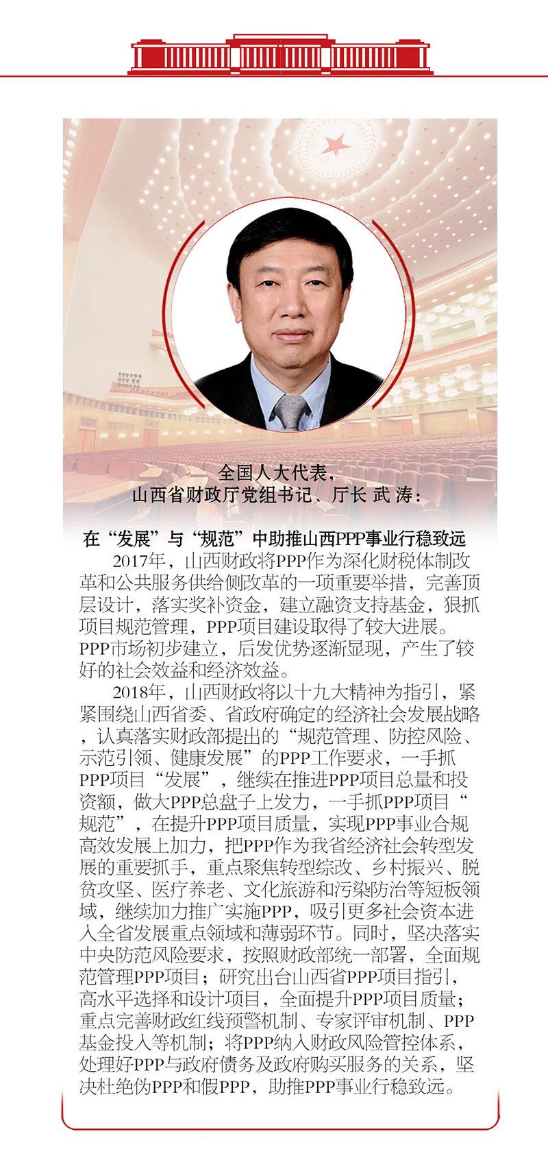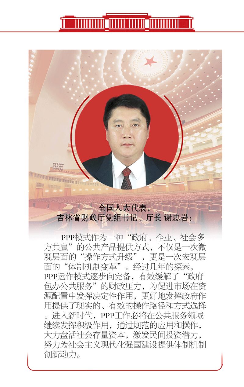 凝心聚力攜手新時代,扎實推進高質量發展。在貫徹黨的十九大精神開局之年,為更好發揮PPP改革作用,強化財政職能,著力解決人民日益增長的美好生活需要和不平衡不充分的發展之間的矛盾,提升公共服務質量,不斷增強人民的獲得感、幸福感、安全感,我們邀請了17位當選新一屆全國“兩會”代表委員的財政廳(局)長,對PPP規范和高質量發展建言獻策,積極支持供給側結構性改革,促進經濟社會持續健康發展和民生不斷改善。
