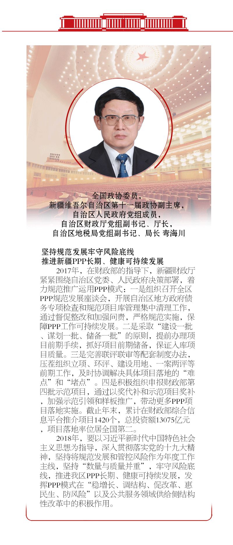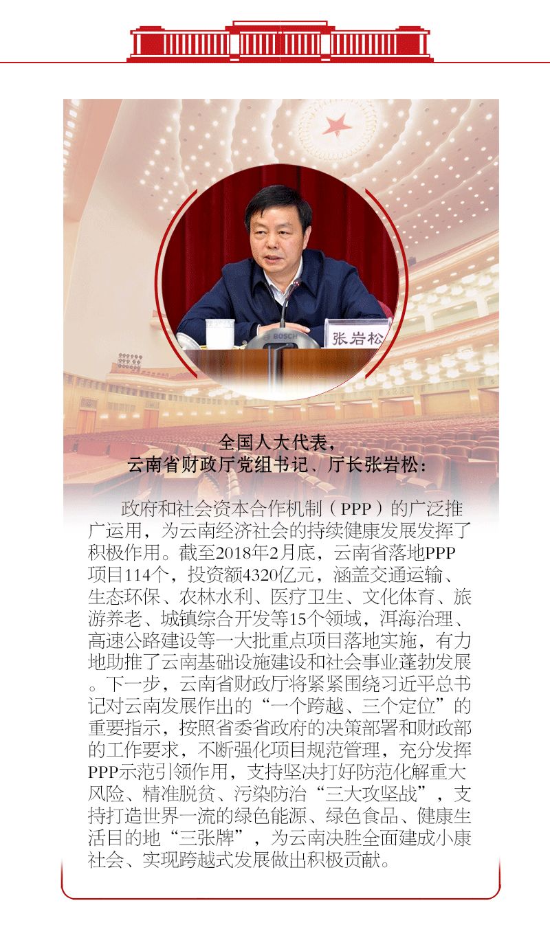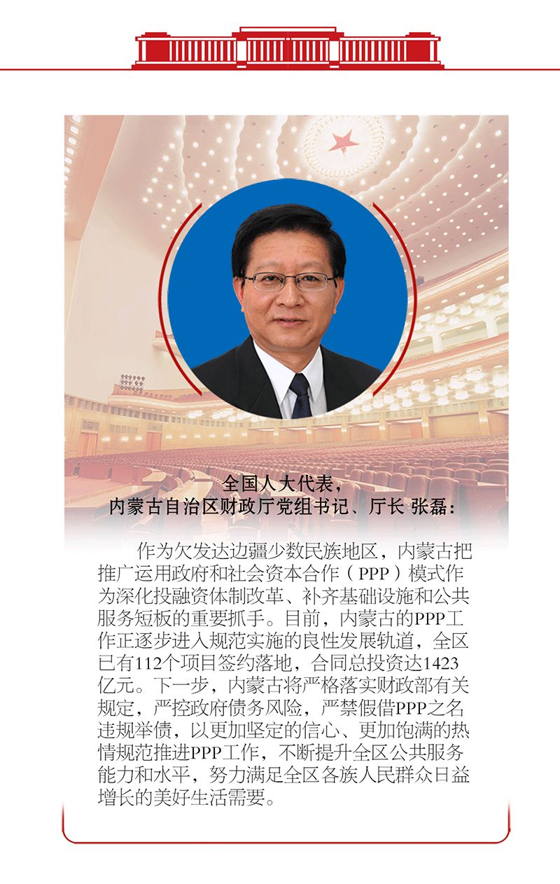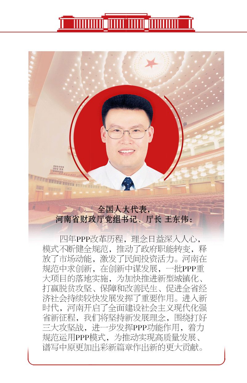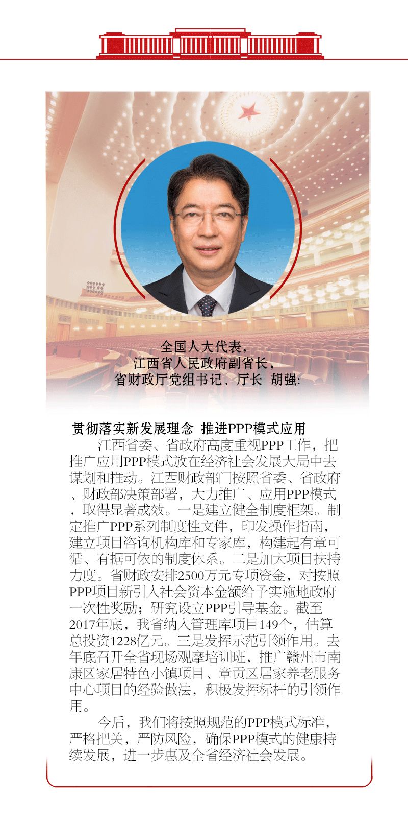 凝心聚力攜手新時代,扎實推進高質量發展。在貫徹黨的十九大精神開局之年,為更好發揮PPP改革作用,強化財政職能,著力解決人民日益增長的美好生活需要和不平衡不充分的發展之間的矛盾,提升公共服務質量,不斷增強人民的獲得感、幸福感、安全感,我們邀請了17位當選新一屆全國“兩會”代表委員的財政廳(局)長,對PPP規范和高質量發展建言獻策,積極支持供給側結構性改革,促進經濟社會持續健康發展和民生不斷改善。