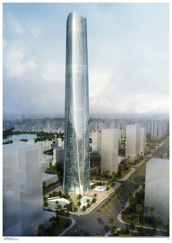 海口塔項(xiàng)目位于海南省海口市大英山新城市中心區(qū)D15地塊上,是集超五星級(jí)酒店、高級(jí)會(huì)所餐廳、SOHO式公寓、高級(jí)寫字樓等多種功能為一體的海南第一高樓。項(xiàng)目主要由一個(gè)塔樓和位于塔樓兩側(cè)的東西裙樓所組成。塔樓地上94層,高度428米。