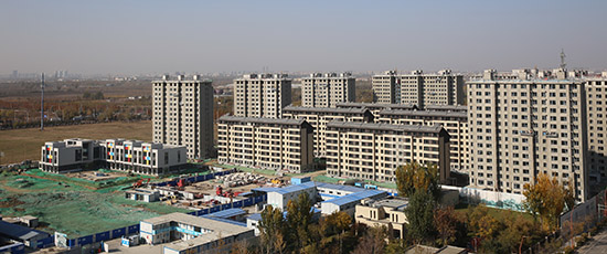 5分鐘裝一塊樓板、6天干一層樓……在中建二局三公司北京大興區魏善莊鎮金茂悅工程現場,工具式施工平臺正緊緊攀附在樓外墻,輔助搭建著主體結構施工。這個由15棟樓組成的龐大建筑群,正在向即將到來的竣工目標全力沖刺。作為北京市第一批全裝配式商品房,該項目在傳統裝配式住宅單一方向構件做法上進行技術升級,將樓板、外墻、內墻、樓梯、空調板等豎向 與水平構件全部進行預制,真正實現了100%全裝配式住宅。