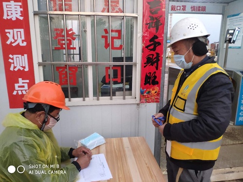 (1)按"外防輸入,內防擴散”原則,嚴格按照集團公司《新型冠狀病毒肺炎疫情防控聯動應急工作方案》防控要求,要求各施工班組錯峰返崗,且所有返崗人員采用大數據查詢工具“疫情期間行程查詢”查詢人員行程,確保無重點疫區人員進入工地,并填寫節后返崗人員疫情防控調查表,建立“一人一檔”健康檔案。