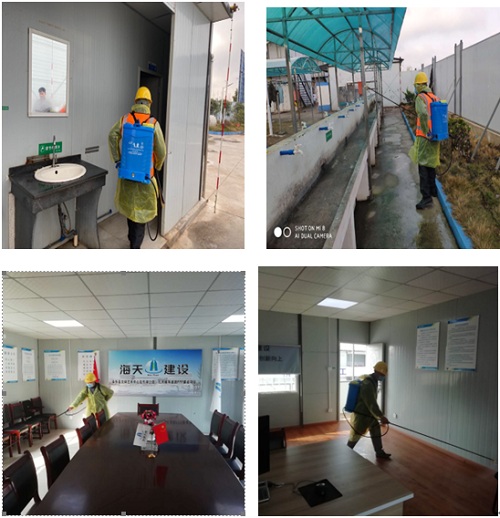 (1)成立以項目經理負責的新型冠狀病毒感染肺炎疫情防控工作小組,編制并發布《冠狀病毒感染的肺炎疫情防控應急預案和復工方案》,指導疫情防疫工作,設置疫情防控辦公室,做到科學防疫與建設生產二不誤。