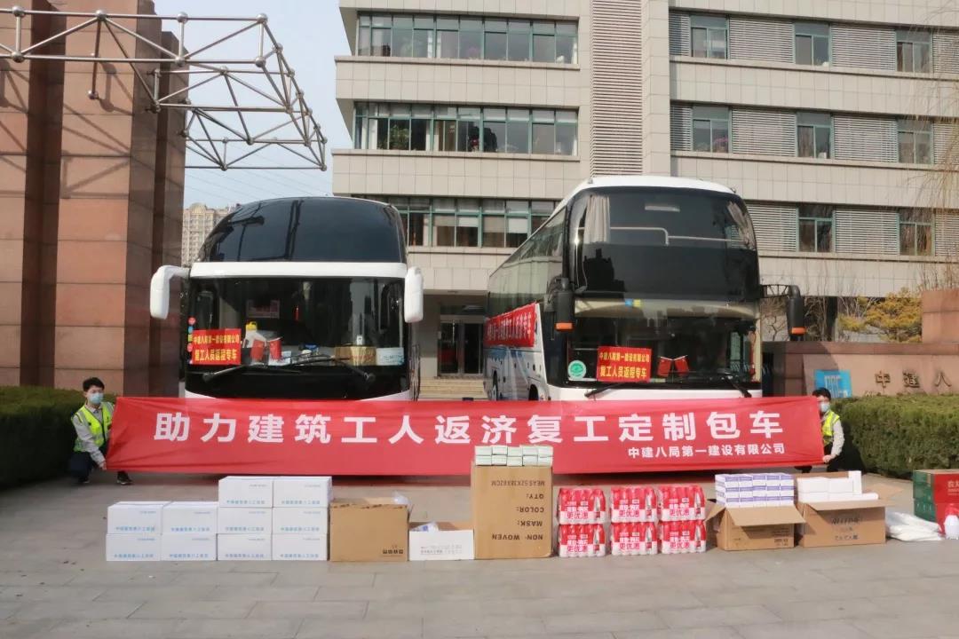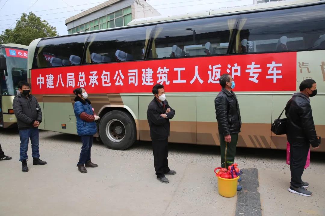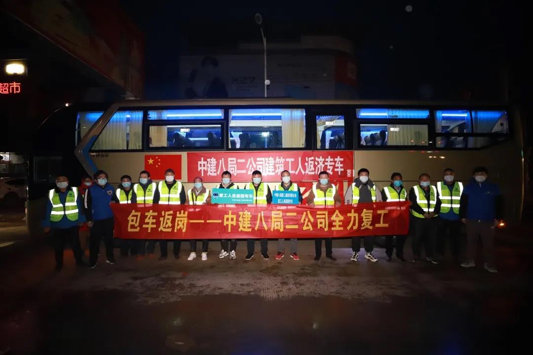 中建八局“定制”的專車,正載著工友們從五湖四海奔赴項目,“護送”他們安全返崗,全力推動有序復工。