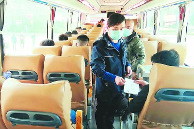 考慮到防疫要求,原本核載55人的大巴車,卻只安排了18人乘坐,路上大家一人兩座間隔相坐,并且車輛尾部還預留兩排座位,用作突發情況隔離區。